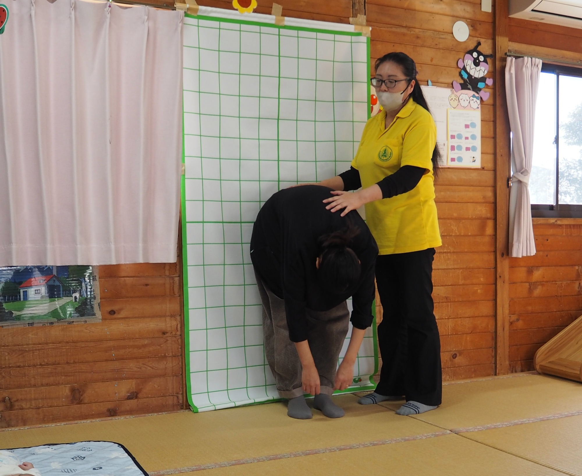 産後骨盤ケア・・・一人ひとりの身体の様子をチェックしながら個別でケアをしたり、全体で骨盤のゆがみチェックをしたりしました。