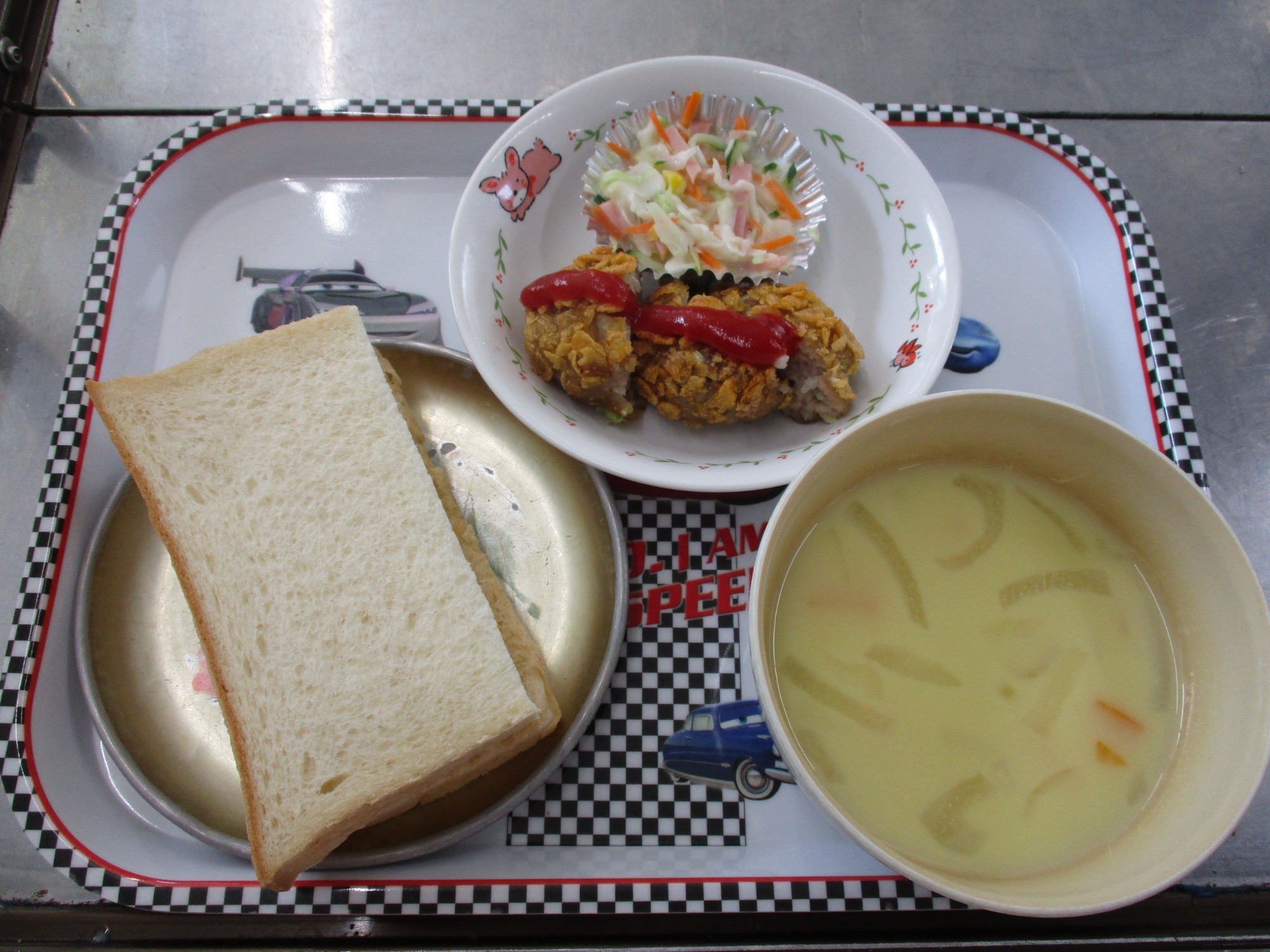 〇パン〇カップメンチカツ〇コールスローサラダ〇コーンスープ